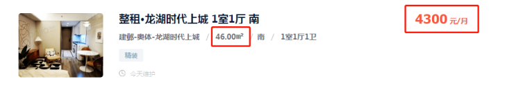 河西中胜地铁口龙湖天街的公寓龙湖时代上城,46平整租需要4300元/月。