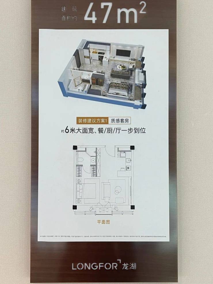 龙湖天曜星座层高10层,相比市面上常见的公寓得房率更高,虽然面积只有47平,但开间约6米,而且空间灵动可以做成双钥匙,做两间出租。