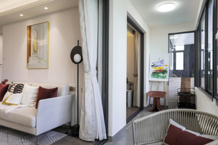 越秀南京玖华府全屋多飘窗设计,有效利用空间,重构意境关系,实现场域的扩容。根据居者需求,南北飘窗搭配各种不同的生活场景需求,可打造成:朋友社交的小天地、温馨舒适的休息角、阅读学习的办公区、杂物收纳的储物间……南向双面宽观景阳台,与客厅一脉贯通,内外交融间,社区内景色一览无余,对自然的体悟融入观赏之中。