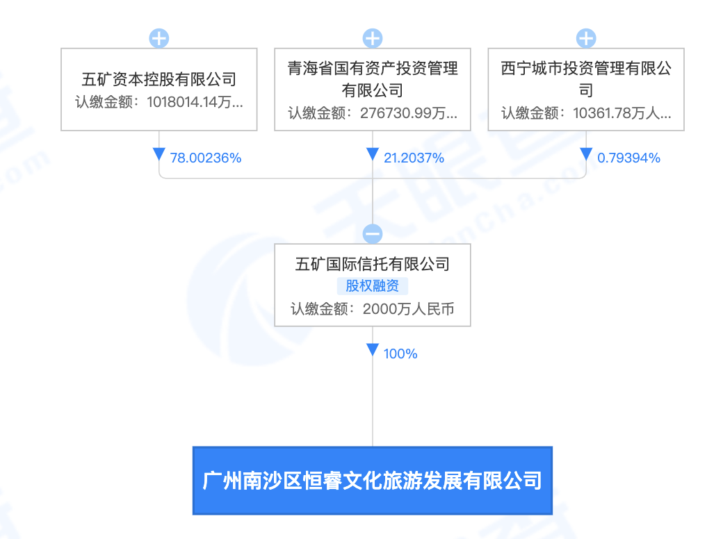 该公司注册于2020年9月11日,注册资本为2000万元,经营范围包括文化场馆管理服务;文化用品设备出租;会议及展览服务;旅游业务;房地产开发经营;演出场所经营;体育场地设施经营。在此次退出之前,广州南沙区恒睿文化旅游发展有限公司由广州文旅城旅游发展有限公司持股51%,后者由恒大童世界100%控股。目前广州南沙区恒睿文化旅游发展有限公司已由五矿国际信托100%控股。