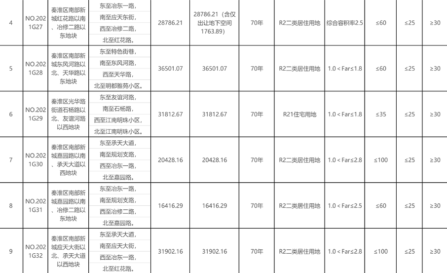 此外,在2021年宁出第04号出让公告,推出首批次“两集中”出让的52幅地块中,大校场首次挂出“限房价、竞地价”地块,一口气拿出5幅地块,分别是G27、G28、G30、G31、G32地块,且全是住宅用地。