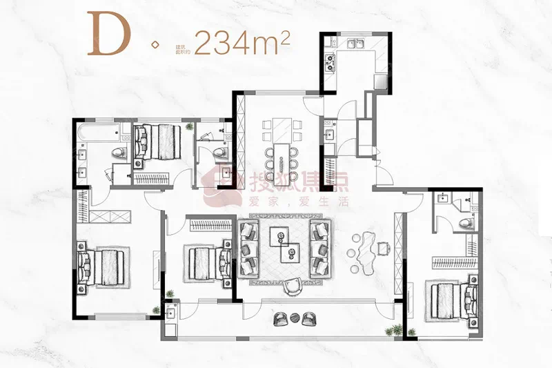 户型上,项目更偏向于改善,打造建面约143-234平,143平四房起步,较大户型234平,也是目前板块在售项目中较大户型。每种户型均做到四开间朝南,餐客一体双厅,大面宽阳台,主卧套房设计,配备步入式衣帽间、独立卫浴。
