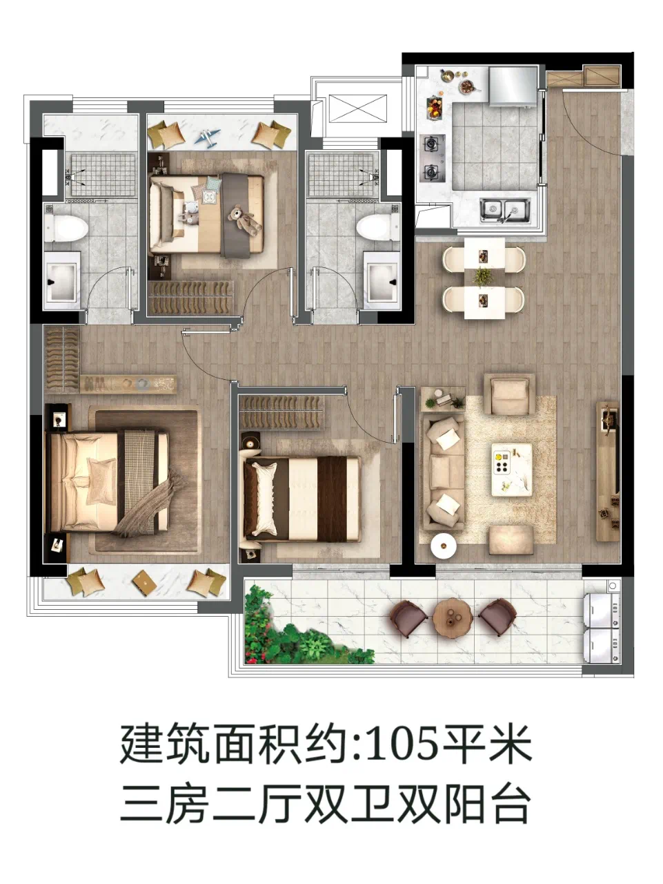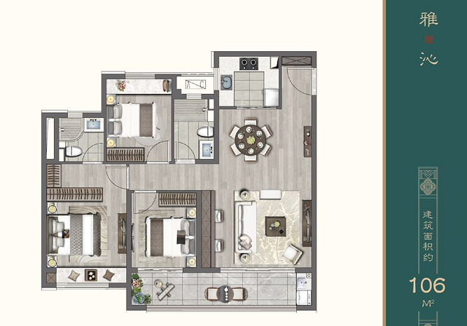 项目打造89、105、113㎡三个户型建筑面积段。
