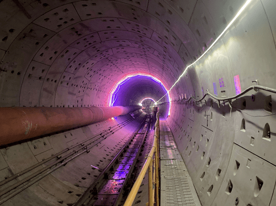截至2023年11月,4座车站和中间风井均已开工,3座车站和中间风井已完成围护结构,3座车站完成主体结构。5条盾构隧道始发,其中3条盾构隧道贯通。