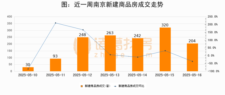 【南京成交日报】05月16日新房成交204套、二手房559套;涨价房源90套