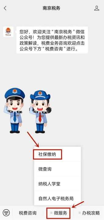 微信小程序,搜索“江苏税务社保缴纳”小程序或者通过“南京税务”微信公众号“微服务-社保缴纳”进行缴费操作。