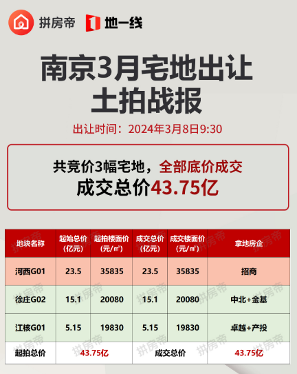 南京龙年首场土拍结束!三幅涉宅地块全部底价成交!