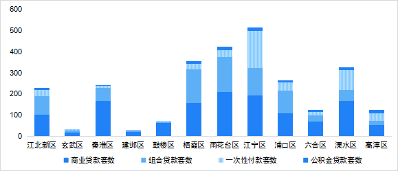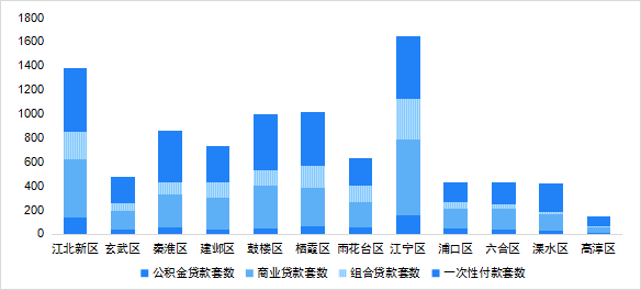 除自有资金外,仅使用公积金贷款的,占成交总套数的4%,商业贷款和组合贷款分别占比49%和30.1%。一次性付款占比16.9%。