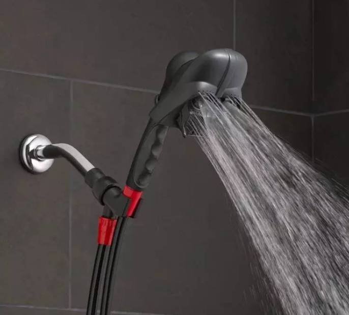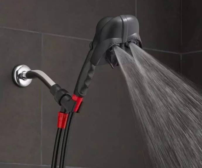 最突出的,一般花洒还是通过旋转来选择模式,它按个键就可以选了,此外它还可以让空气和水混在一起,均匀地打在你身上,冲量很大,又很省水,在有的花洒上,它还有快速清洁花洒头的技能,免于堵塞,另外它的软管是金属包起来的,非常好清洁也是棒。