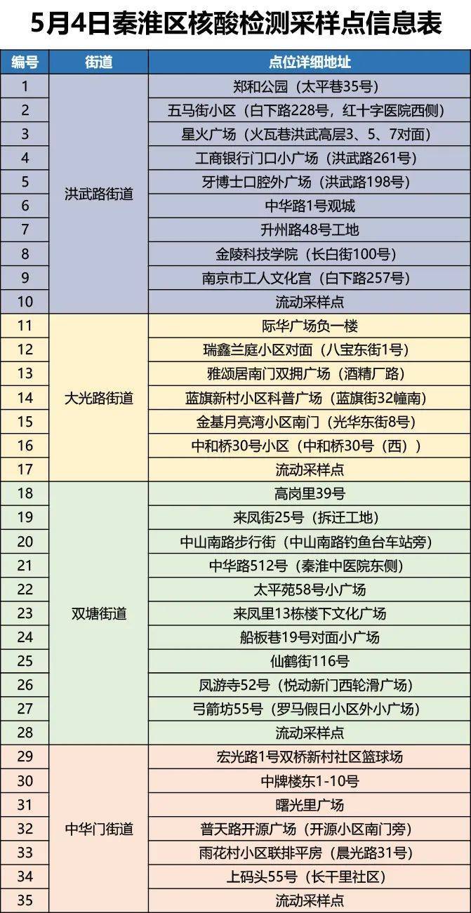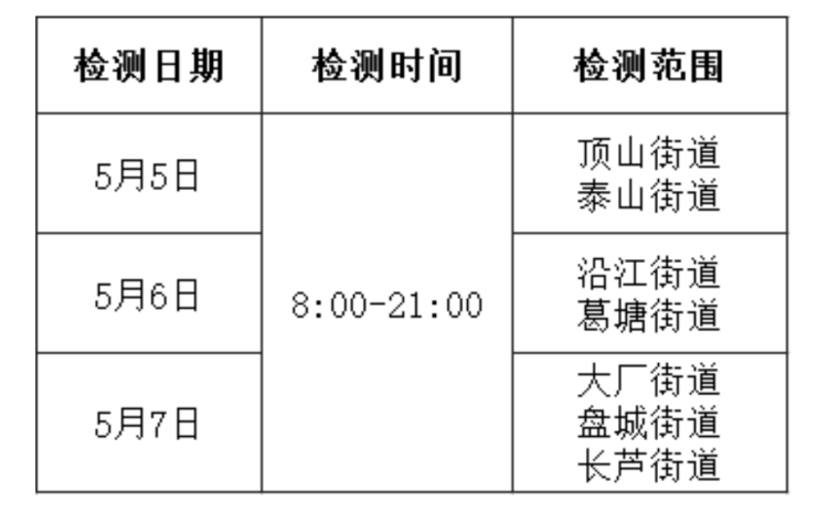 根据当前疫情防控工作需要,为了您的健康和防护安全,秦淮区新冠肺炎疫情联防联控工作指挥部决定于5月4日在部分区域开展核酸检测。现将有关事宜通告如下: