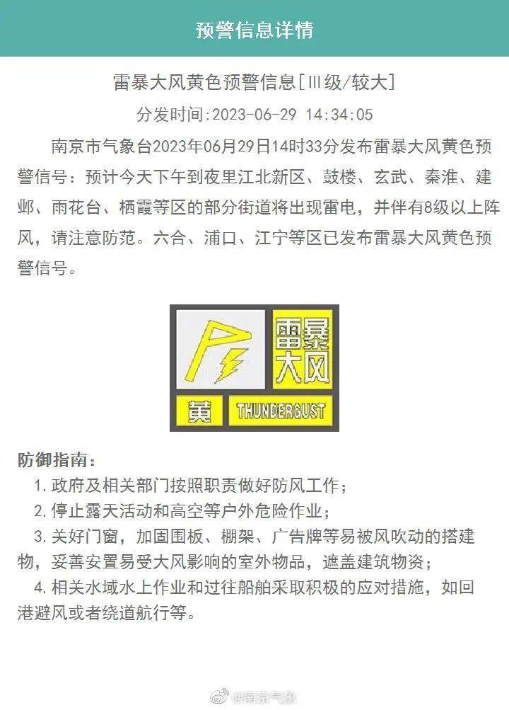 刚刚预计今天下午到夜里江北新区、鼓楼、玄武、部分街道将出现雷电并伴有8级以上阵风已发布雷暴大风黄色预警信号是指发生突然、演变剧烈、破坏力极强的对流性灾害天气。夏季是强对流天气最多发时段,经常出现的则是短时强降…