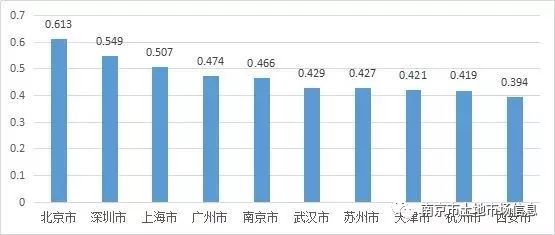 首都科技发展战略研究院基于以人为本的城市创新发展理论体系,构建了创新资源、创新环境、创新服务和创新绩效4个一级指标,细分为每万人在校大学生数、每万人发明专利申请量、每万人吸引外商投资额、孵化器数量、城镇居民人均可支配收入、中国500强企业数等26项具体指标的“中国城市科技创新发展指标体系”。基于该体系,研究发布了中国创新城市TOP10,荣登榜单的依次是北京、深圳、上海、广州、南京、武汉、苏州、天津、杭州、西安,其中南京排名第5,总得分为0.466。