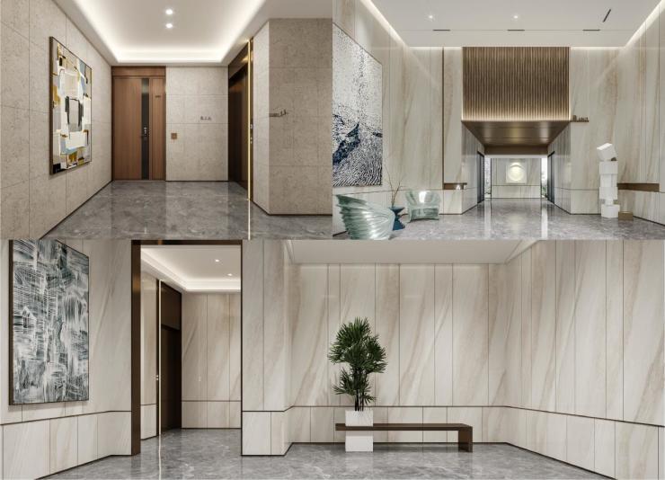 酒店式公区设计,“入户大堂、单元门庭、地下车库入户大堂、电梯厅”四重归家礼序,更不乏智能人脸识别入户等社区智能设计,塑造归家仪式感。