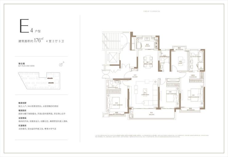 建面约176㎡大四房,独立电梯厅入户,南向四开间、阔约双套房,整个空间的设计感非常优秀;同时,外加一个多功能房,实际使用率和舒适度非常高,是金地·大成雅境的大热门户型,或将迅速清光~