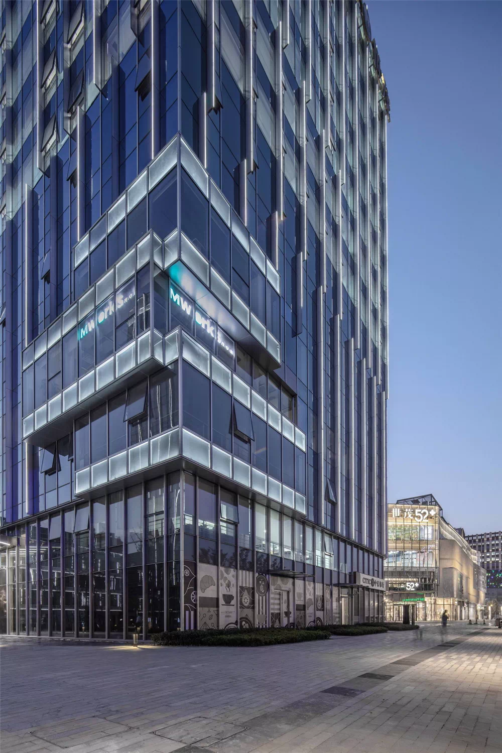 私密性和独立性。再搭配用材的通透性,将不同区域整合在一起。形成了世贸52+的多重性