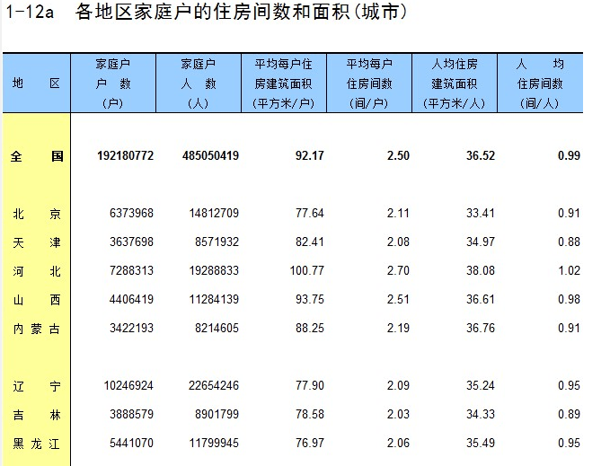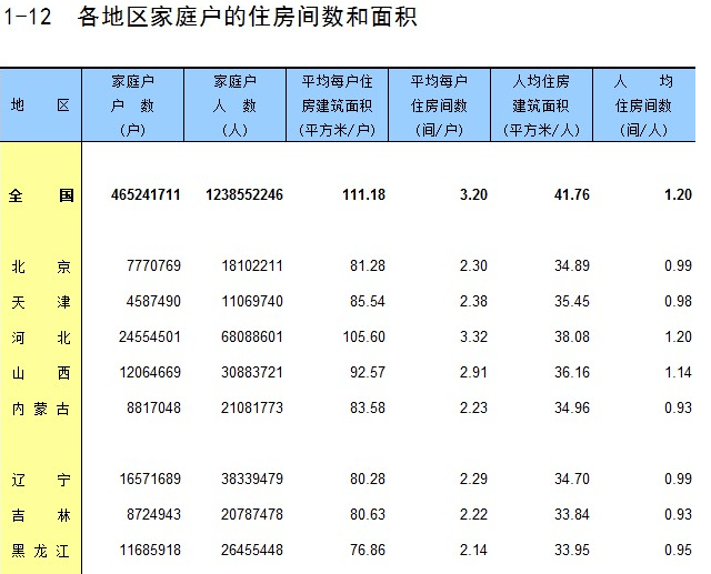 人均住房面积41.76平方米这一数据,包括城市、镇和农村的家庭。由于我国城乡居住面积差异大,通常而言,农村、小城镇的人均居住面积要远大于城市。