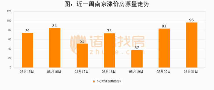 根据诸葛找房数据显示,南京24小时涨价房源量为96套,较08月20日增加13套,环比上涨15.7%。与此同时,涨价房源占比小幅扩大,业主信心有所提升。