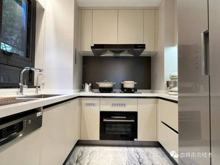 U型厨房,交付的东西比较多,博世全套的油烟机+洗碗机+蒸烤一体箱+灶具+对开门冰箱……