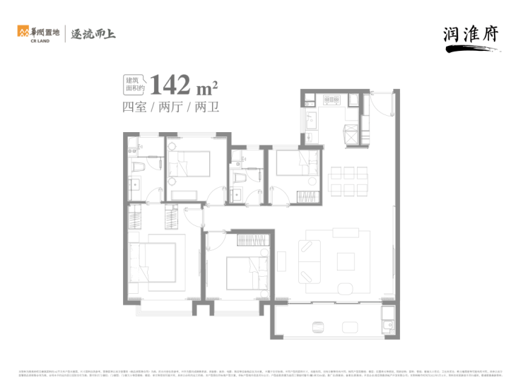 不同于市面上起步就到达140㎡,华润润淮府共建4栋住宅,只有建面约112、142㎡两种户型,产品户型面积段适中,户型设计优势明显。