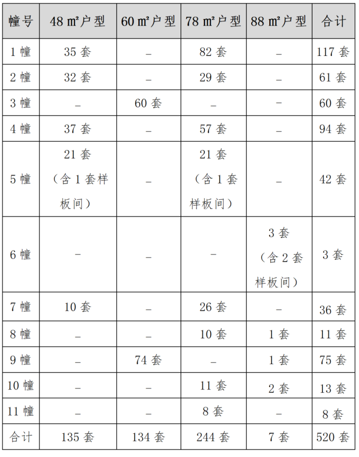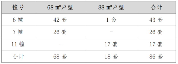 本次续销房源共计644套,目前已全部竣工,毛坯现房。其中,芳庭南园项目520套(含4套样板间)、御道嘉庭项目38套、钟秀嘉园项目86套。房源建筑面积以实测为准,具体如下:
