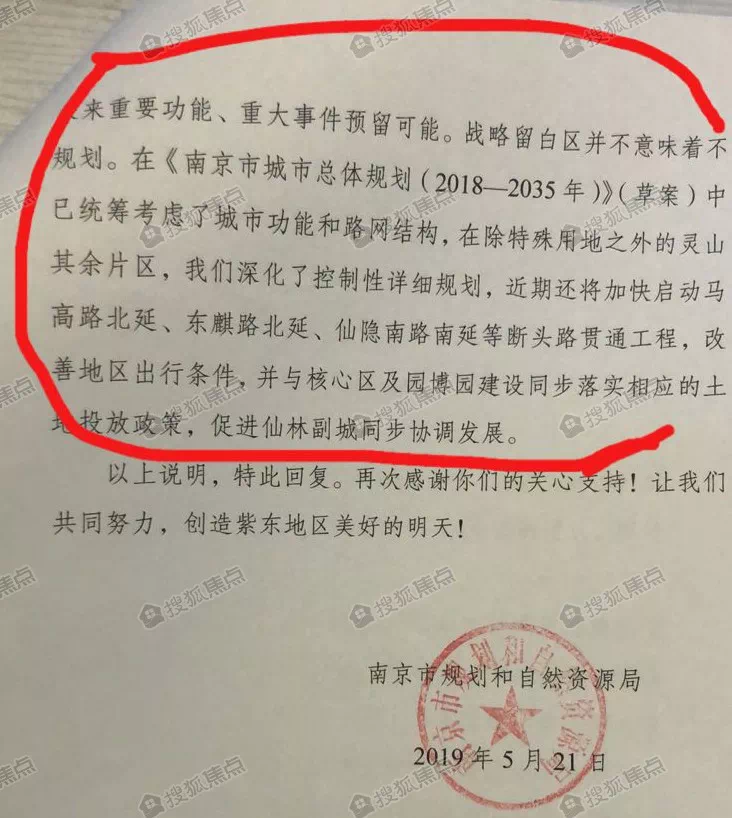 南京规划和自然资源局于5月21日回复网友意见中提出如下内容: