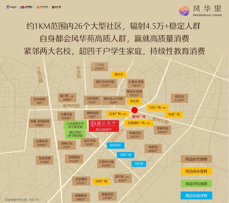 同时风华里约1km范围内布局着26个大型社区,辐射超4.5万日常稳定消费群体,拥有可观的社区客群“流量”。
