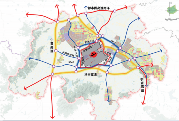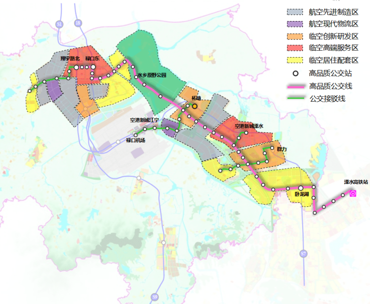 禄口机场、江宁区和溧水区三个板块间“空间-产业-交通”三要素的统筹协调;