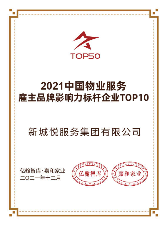 中国物业服务企业综合实力500强(2021年第12名 | 中国房地产测评中心)