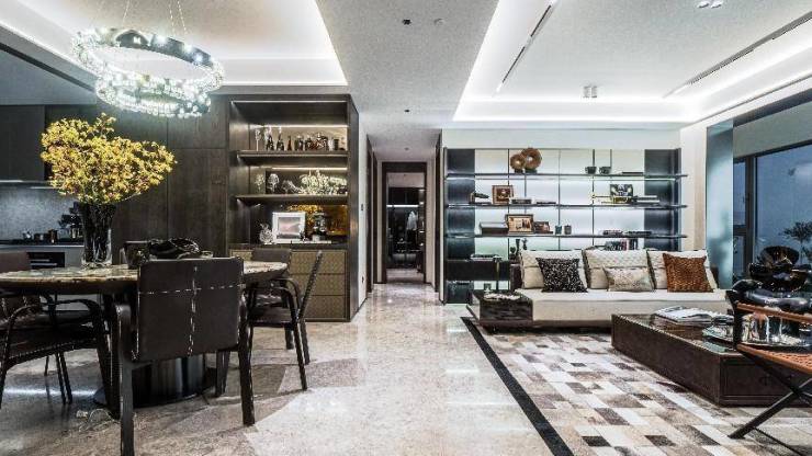 比奢华更懂生活的是细节,精研不可逆高定人居,首开桃园金茂府以大尺度空间、人性化设计细节为基调,一梯一户的贴心设计,营造出专属的私密空间;独立的玄关空间,保加利亚灰深色石材,让入户第一刻尽显尊崇感。