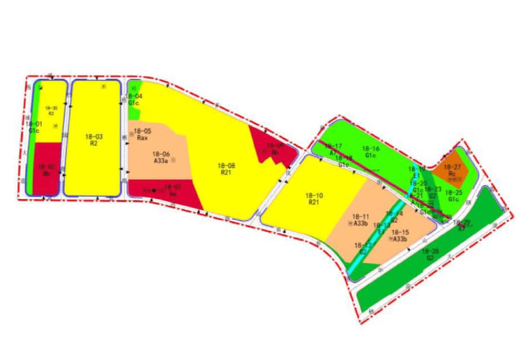 修改后的MCb020-18分为商办混合用地(18-02)和R2宅地(18-30),其中商办用地限高100米,容积率<4.0,建筑密度<50%;R2宅地要求容积率<2.5,限高80米,建筑密度<35%,绿地率>30%。18-03地块调整为二类居住用地(R2),容积率<2.5,建筑密度<25%,建筑高度≤80 米,绿地率>30%。