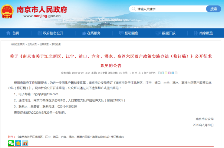 日前,南京市人民政府官网发布了《南京市关于江北新区、江宁、浦口、六合、溧水、高淳六区落户政策实施办法(修订稿)》、《南京市人才落户实施办法(修订稿)》两份文件。