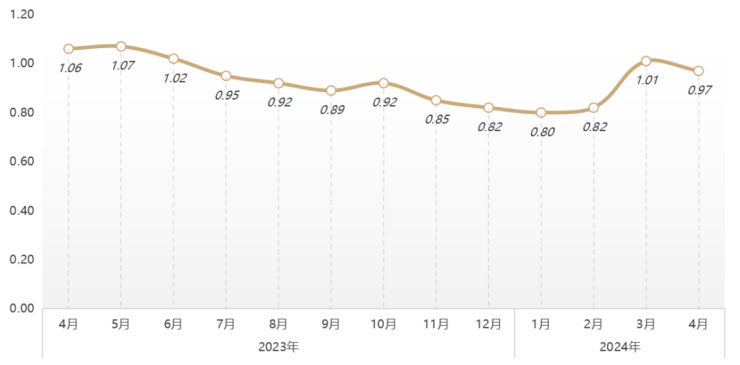据我爱我家南京研究院统计,4月南京二手房房客比为0.97,环比3月减少0.04,新增房客比持续趋稳;但从库存房源量来看,目前我爱我家官网二手房可售房源约15万套,整体市场仍是供过于求,房源去化难度较大。
