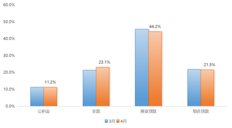 4、付款方式相对稳定,商贷占比44.2%