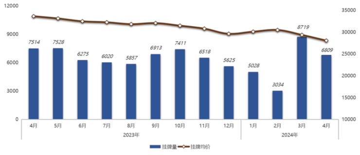 据我爱我家南京研究院统计,4月南京二手房新增挂牌量6809套,环比3月下滑21.9%;新增挂牌均价为28056元/㎡,环比也下跌4.4%。从挂牌走势来看,因市场实际成交行情有所下调,业主心理预期也明显回落,一方面是挂牌积极性不高,另一方面是价格预期持续下调,最新挂牌均价也降至2.8万左右。