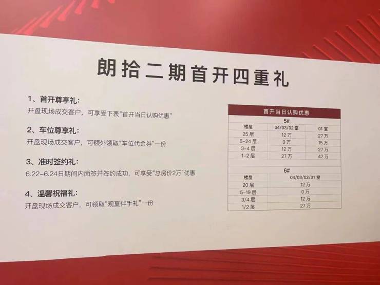 据现场公示,今天朗拾二期开盘还给到了首开优惠。