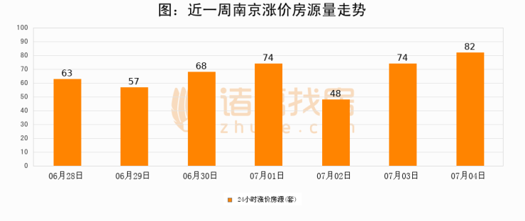 根据诸葛找房数据显示,南京24小时涨价房源量为82套,较07月03日增加8套,环比上涨10.8%。与此同时,涨价房源占比小幅扩大,业主信心有所提升。