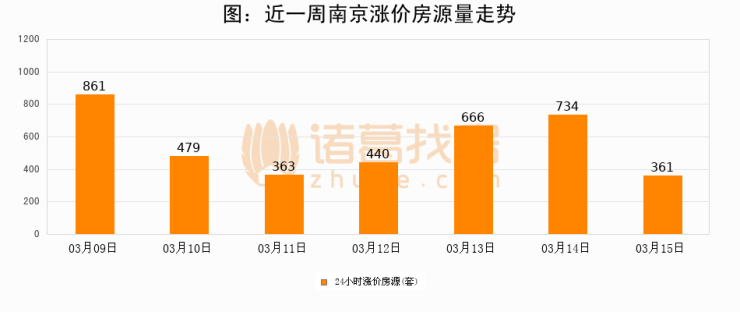 根据诸葛找房数据显示,南京24小时涨价房源量为361套,较03月14日减少373套,环比下降50.8%。与此同时,涨价房源占比小幅回落,对于购房者来说是一个入市窗口期,购房者可抓住时机入市。