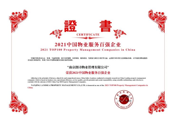 近日,在由中指研究院、中国房地产TOP10研究组主办、中指控股(CIH)、中指研究院承办的「2021中国物业服务百强企业研究成果发布会暨第十四届中国物业服务百强企业家峰会」上,刚完成朗诗绿色生活上市的它凭借行业先进的服务质量、良好的客户口碑及业务发展、高度的社会责任感,再次赢得业界高度认可,连续5年蝉联「2021中国物业服务百强企业」,排名提升至TOP24。