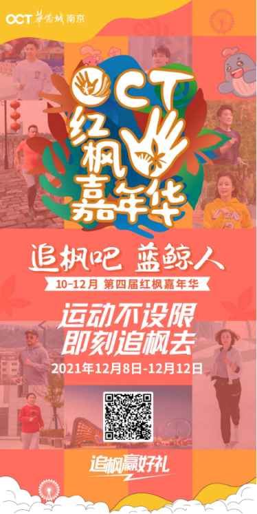 2021年,在疫情常态化情形下,第四届红枫嘉年华迎来内容、形式的全新升级。活动以“追枫吧 蓝鲸人”为主题,通过规划全周期线上活动,打造“代言人联动”“追枫直播”“线上追枫”三大追枫板块,构建强趣味、强互动、强地方特色的递进式高品质节庆体验,带领南京市民从“云追枫”到变身“追枫人”,不断深入互动,掀起一场“南京追枫打卡”的热潮。