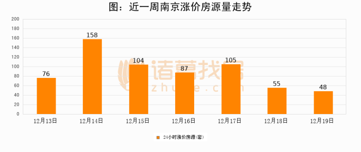 根据诸葛找房数据显示,南京24小时涨价房源量为48套,较12月18日减少7套,环比下降12.7%。与此同时,涨价房源占比小幅回落,对于购房者来说是一个入市窗口期,购房者可抓住时机入市。