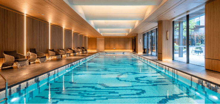 美学会所撷取瞻园的文化脉络,以现代隐奢技法,演绎东方雅的古典传韵,臻享恒温泳池、健身、私宴、儿童活动阅览等于一体的私享空间。链接古今雅集意趣,兑现高净值人物对生活的进阶向往。