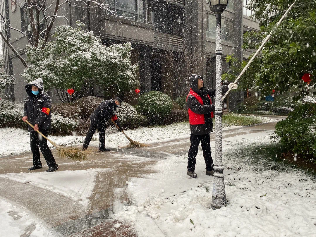 大雪半夜如约而至,由于路面温度低,降雪时间长,导致部分路面积雪厚,并出现结冰、湿滑的情况,给业主出行带来诸多不便,为此,南京、扬州、镇江多个项目物业服务团队迅速联动起来,浴雪奋战,扫雪除冰,保障各项目正常运行。