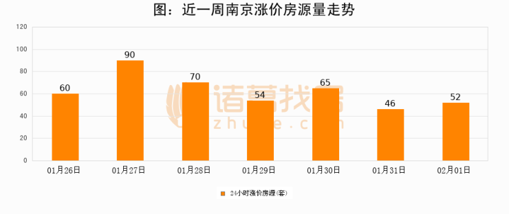 根据诸葛找房数据显示,南京24小时涨价房源量为52套,较01月31日增加6套,环比上涨13%。与此同时,涨价房源占比小幅扩大,业主信心有所提升。