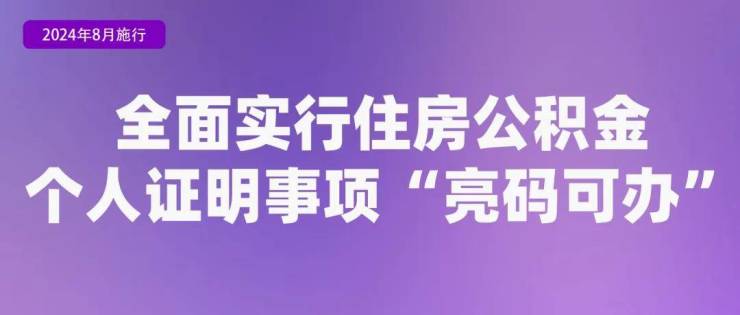 《住房城乡建设部办公厅关于整合住房公积金个人证明事项推动“亮码可办”工作的通知》提出,依托全国住房公积金小程序和全国住房公积金监管服务平台,在住房公积金缴存人申请开具职工缴存证明、异地贷款缴存使用证明、贷款结清证明等个人证明时,向其提供实时在线开具、后台自动查验等服务,以统一“电子码”代替原有3项纸质证明,实现住房公积金个人证明事项“亮码可办”。2024年8月起,全面实行住房公积金个人证明事项“亮码可办”。