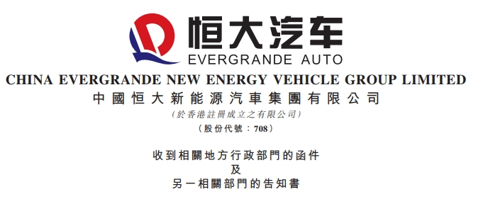 6月11日晚间,恒大汽车发布公告称,相关附属公司于近日收到相关地方行政部门进一步下发的行政处理决定书(简称“行政决定书”)以及另一份“告知书”。