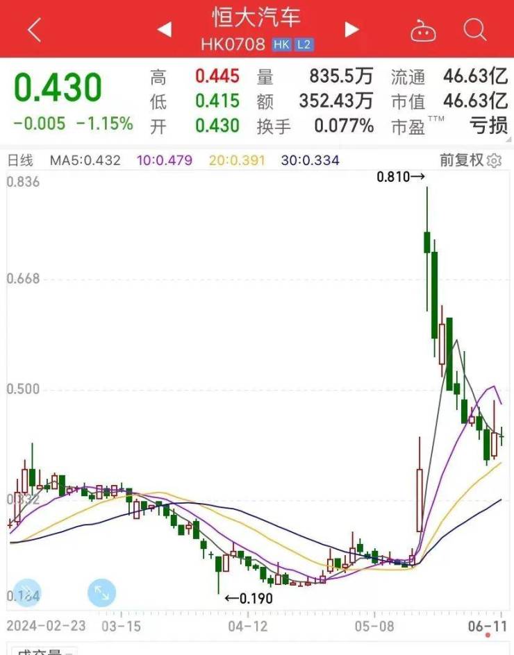 在“神秘”买家消息的刺激下,港股恒大汽车股价两个交易日暴涨380%。不过截至本周二收盘,恒大汽车股价较5月27日高点已回吐一半。