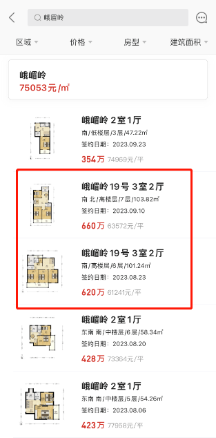 均价7.5万/平的峨嵋岭在8月和9月接连成交了两套100平左右的房源,成交单价6.1-6.3万/㎡,对比一开始的挂牌价,房主分别降价了40万、76万!