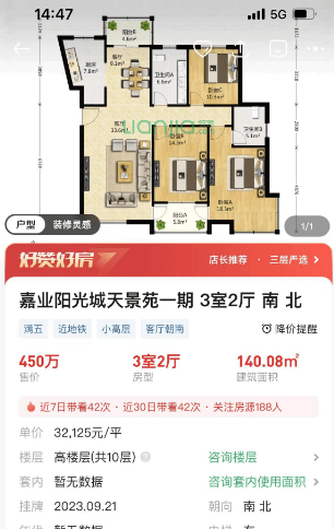 同时看房哥还注意到,位于奥东的嘉业阳光城一套140平的房源正在抛售,挂牌总价仅450万,折合单价仅3.2万/平!