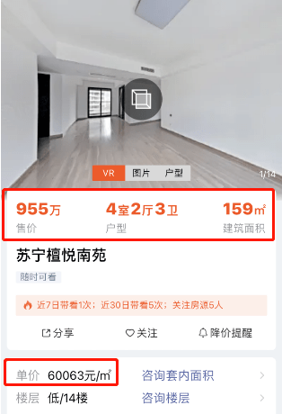这两天,看房哥在朋友圈里看到河西中双学区房苏宁檀悦的一套二手房在急卖,折算单价仅有6万/平!