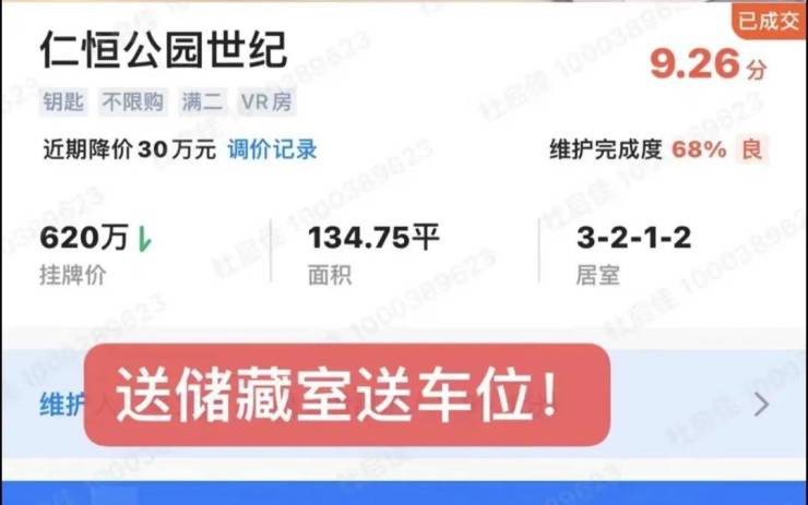 这套房面积134.75㎡,房主报价620万,最终580万成交,单价43043元/㎡,而且580万是包含车位和储藏室的,加上这几年的房贷利息以及办证等成本,业主无疑是在亏本卖房。